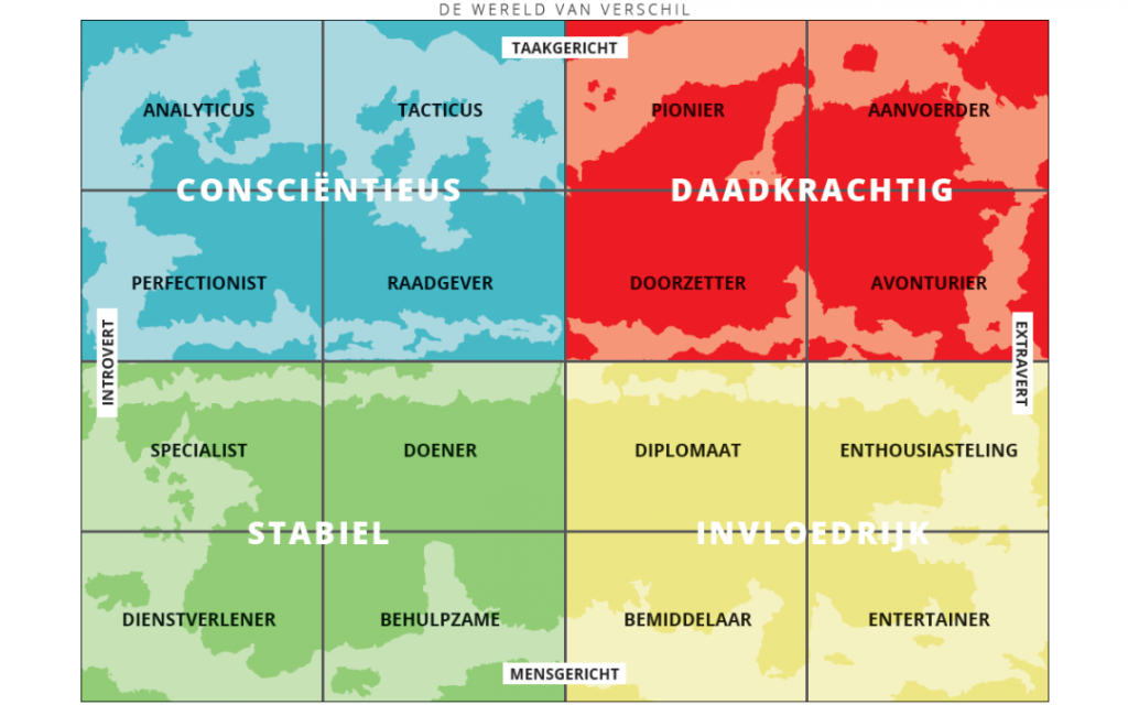 Pasgeleden aan een tafeltje naast mij, tijdens een lunch bij Van der Valk. “We willen binnenkort iets met kleuren of DISC doen”. Begrijpelijk want DISC is een prima middel om gedrag van medewerkers en teams in beeld te brengen. In het kader van anders kijken, anders denken en anders doen hebben wij een bijzondere DISC methodiek in ons programma. De Wereld van Verschil van MapsTell. Dit programma is gebaseerd op het door William Marston ontwikkelde DISC-Model, waarin vier hoofdstijlen onderscheiden worden: Daadkrachtig, Invloedrijk, Stabiel en Consciëntieus. Deze vierhoofdstijlen zijn uitgewerkt in 16 gedragsstijlen.